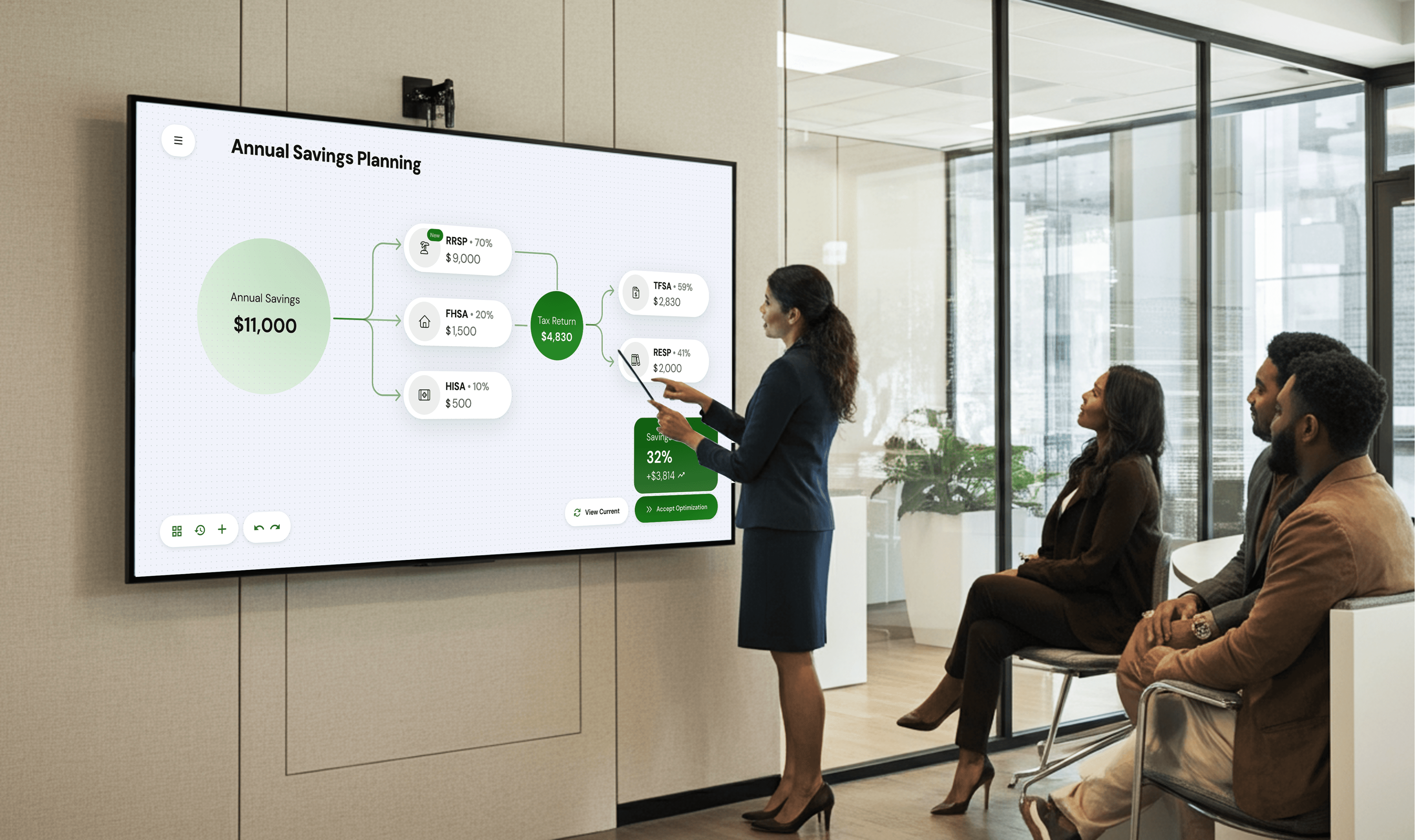 My imagined future of in-person banking focuses on creating experiences where advisors can walk clients through their portfolios in a way that is fully visible, interactive, and easy to understand.